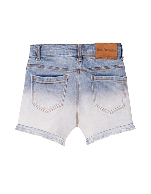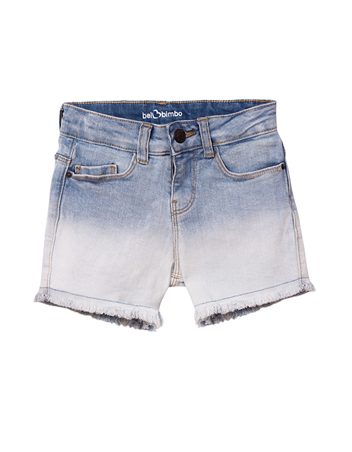 Короткие джинсовые шорты для девочки прилегающего силуэта. Передние и задние накладные карманы. Шлёвки по поясу. Низ изделия с потрепанным краем.