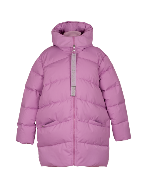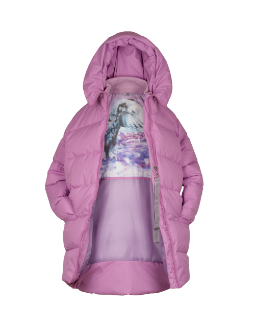 Куртка для девочки на синтепухе прямого силуэта дополнена капюшоном с высоким воротником и застежкой на молнии с декоративной лентой. Ткань плащевая дьюспо хорошо защищает от влаги и ветра, а подкладка из нейлона обеспечивает дополнительный комфорт.