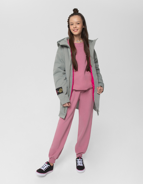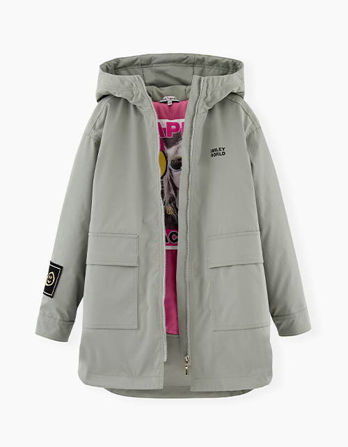 Стильная куртка-парка для девочки. Модель прямого силуэта на утеплителе синтепоне. Доступна регулировка по рукаву. Куртка декорирована нашивкой и цифровой печатью.