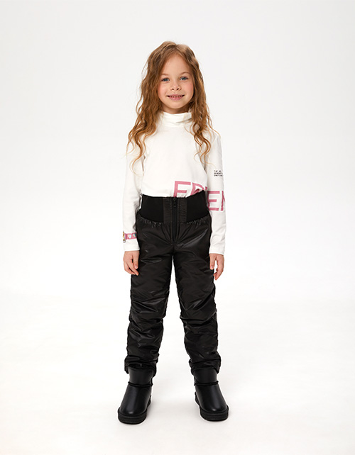 Чёрные утеплённые брюки для девочки. Комфортная прямая модель со средней посадкой. Мягкий эластичный пояс удобен и прост в одевании. Приятный на ощупь износостойкий материал с водоотталкивающим, водонепроницаемым и ветрозащитным покрытием.