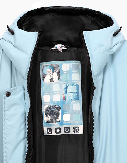 Зимнее пальто на гипоаллергенном синтепухе. Матовая ткань в оттенке лёд. Ветрозащитная планка на кнопках. Мягкие трикотажные манжеты по внутреннему воротнику и рукавам. Подкладка из нейлона. Нашивка-лейбл, декор на подкладке и модная стежка на спинке.