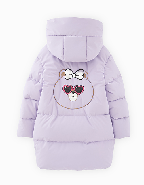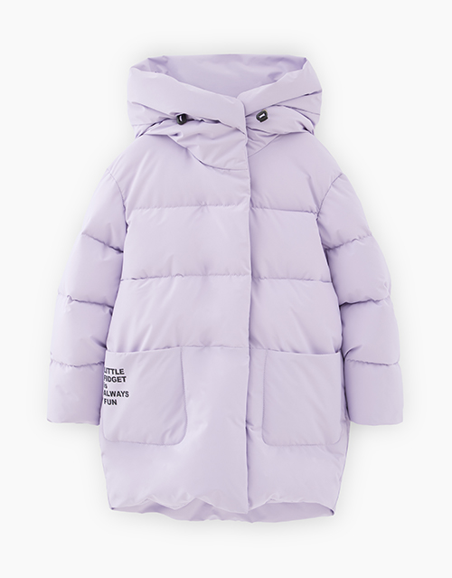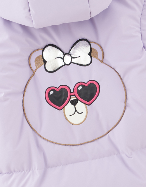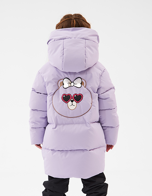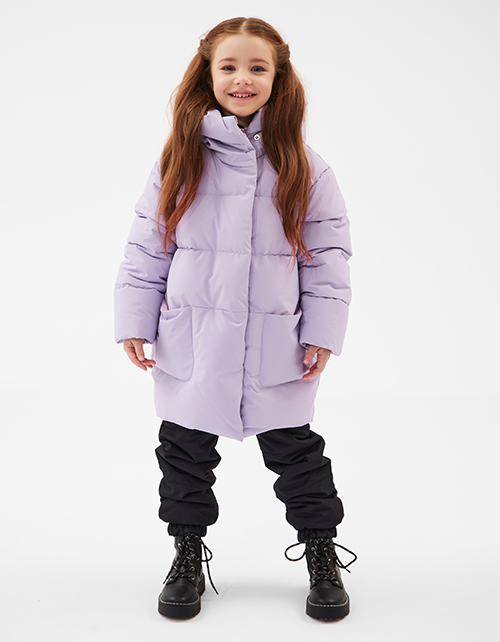 Стильная зимняя лиловая куртка для девочки. Модель декорирована авторским дизайном на спинке. Куртка выполнена из функциональной и простой в уходе мягкой ткани с матовым покрытием, отличающейся хорошими водоотталкивающими и ветрозащитными свойствами.