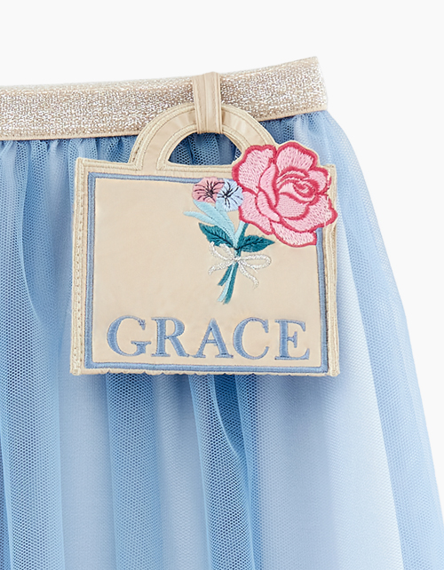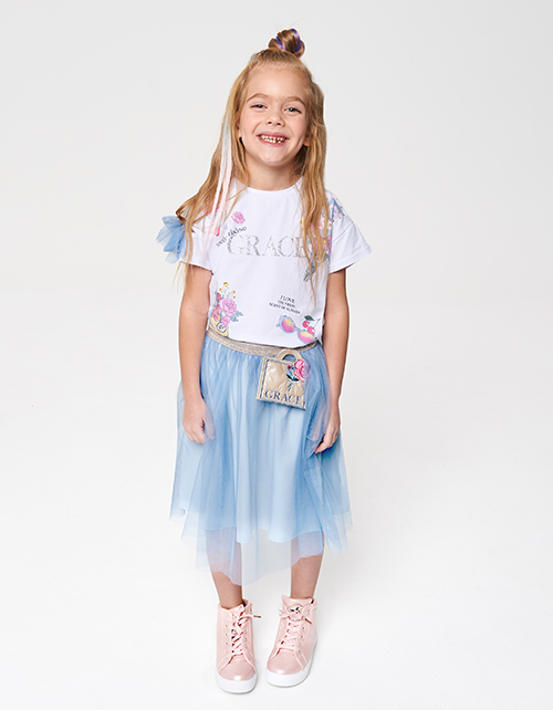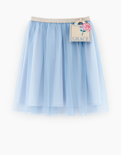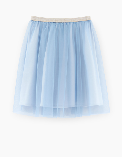 Летняя юбка цвета деним. Стильная модель на эластичном поясе декорирована вышивкой и эластичной лентой с люрексом.
