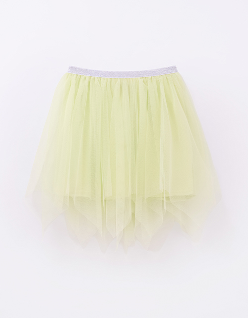 Дизайнерская юбка для девочки. Летящий трапециевидный силуэт с клиньями и лёгким сетчатым полотном создаёт воздушность. Эластичная резинка обеспечивает комфорт, а блестящий пояс добавляет праздничного сияния. Нежная кулирная гладь и мягкая сетка.