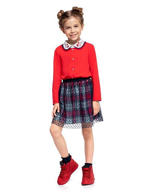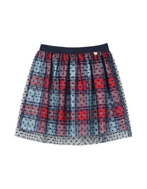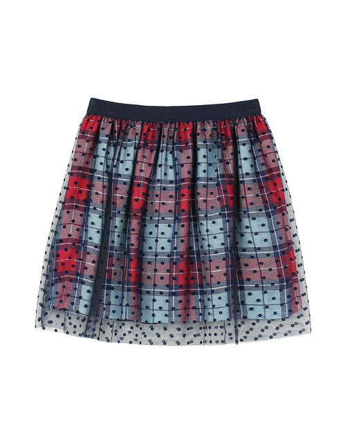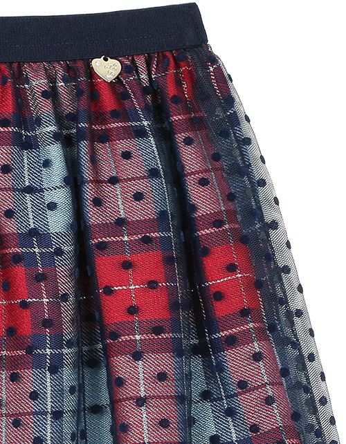 Юбка для девочки фасона клеш с удобным поясом на резинке дополнена отделкой из контрастного сетчатого полотна. Плательная ткань в клетку с большим содержанием вискозы гарантирует приятные тактильные ощущения и комфорт в носке.