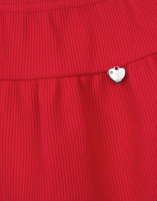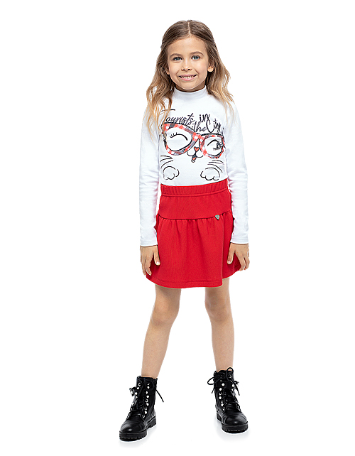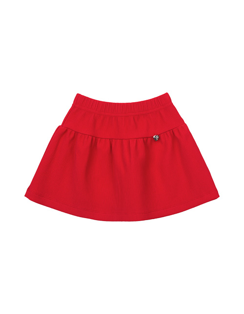 Красная юбка а-силуэта со сборками имеет удобную резинку на поясе и декорирована контрастной пуговицей. Трикотажная ткань футер гарантирует износостойкость, приятные тактильные ощущения и комфорт в носке.