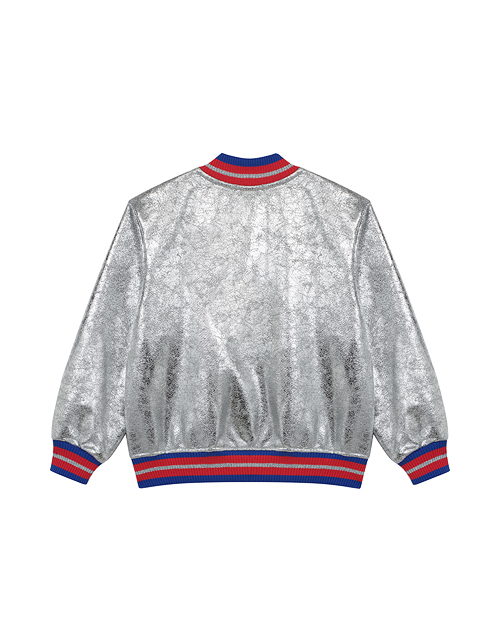 Футуристический бомбер для самой модной и стильной красавицы! Эта модель украсит гардероб и станет незаменимой благодаря актуальной расцветке металлик и контрастным трехцветным манжетам