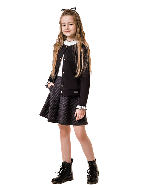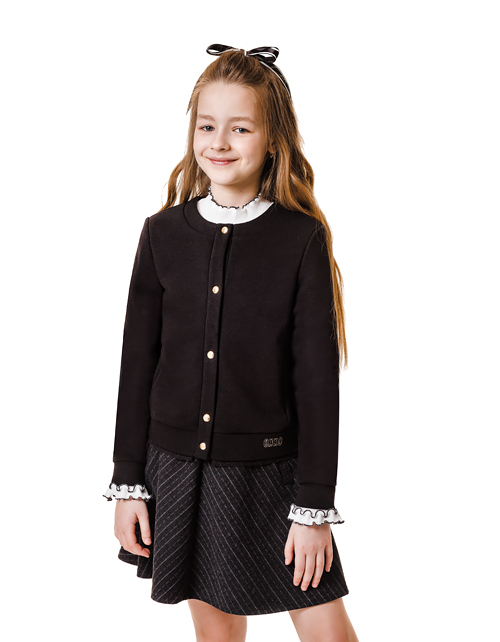 Теплый кардиган с золотистыми пуговицами станет любой вещицей школьницы на каждый день. Универсальная модель дополнит любой образ. Яркие авторские акценты в виде необычного кроя, вышивки и кружева по низу изделия сделают образ индивидуальным.
