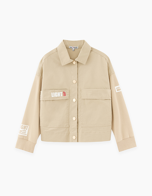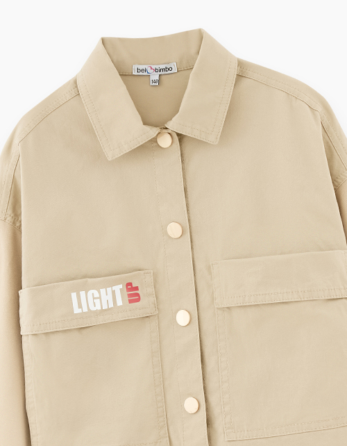 Жакет-джуда для девочки. Стильная повседневная модель с накладными карманами и застежкой на кнопки. Оттенок "холодный кофе" достигается при помощи браш-эффекта на трикотажном полотне.