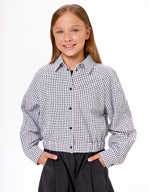 Укороченный жакет-рубашка с лёгким жатым эффектом. Объёмный крой даёт свободу движений. Пояс с мягкой резинкой обеспечивает комфортную посадку. DTF-принт и жемчуг создают стильный акцент. Модель хорошо сочетается с базовыми вещами.