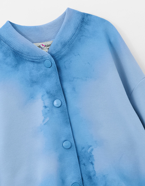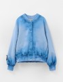 Жакет-бомбер из мягкого материала с комфортным объёмом и приспущенной линией плеча. Эластичная рибана по низу и манжетам обеспечивает удобную посадку. Карманы в шве. Цифровой принт, термоплёнка и кружевной декор добавляют выразительности.