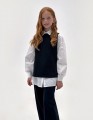 Стильный тёмно-синий жилет для девочки. Модель прямого силуэта. Глубокие проймы и разрезы по бокам помогают создать гармоничный и современный образ. Комфортное изделие из футера станет отличной базой гардероба школьницы.