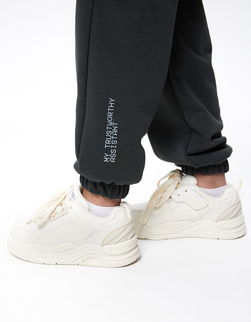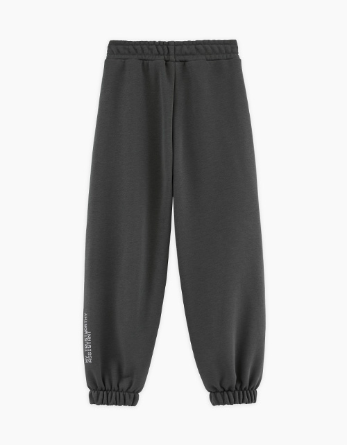 Базовые брюки глубокого оттенка тёмный лес для мальчика. Прямая модель со средней посадкой. Пояс и манжеты на мягкой эластичной ленте. Брюки дополнены карманами. Модель декорирована лаконичным авторским шрифтовым принтом.