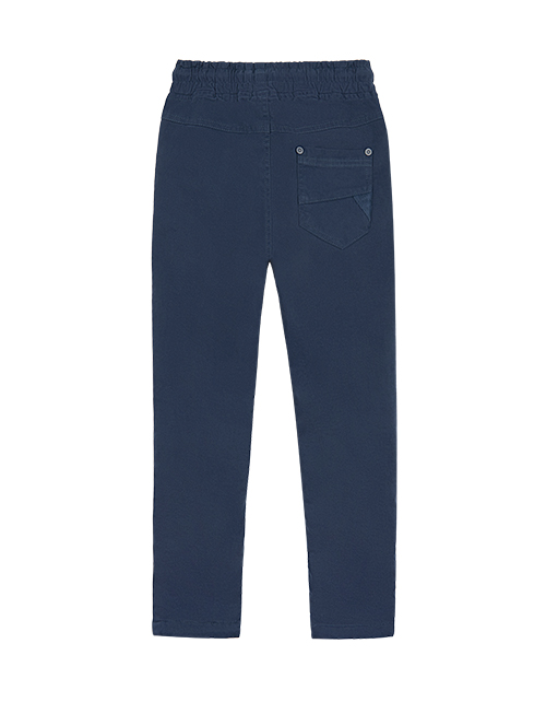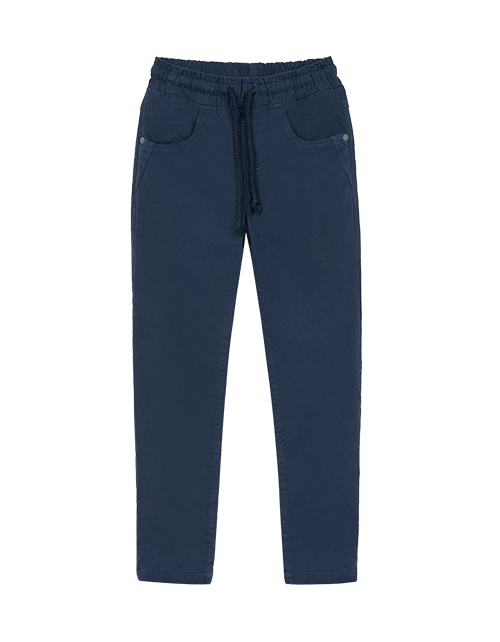 Брюки для мальчика в спортивном стиле имеют зауженный силуэт, дополнены широкой резинкой на поясе с затяжкой, двумя внутренними и одним накладным карманом. Изделие пошито из износостойкого твила, а флисовая подкладка дарит тепло и комфорт.