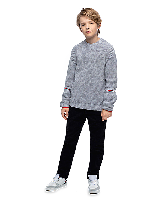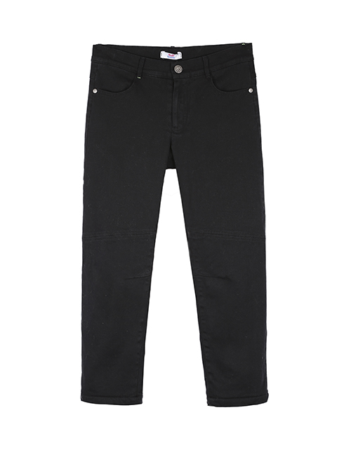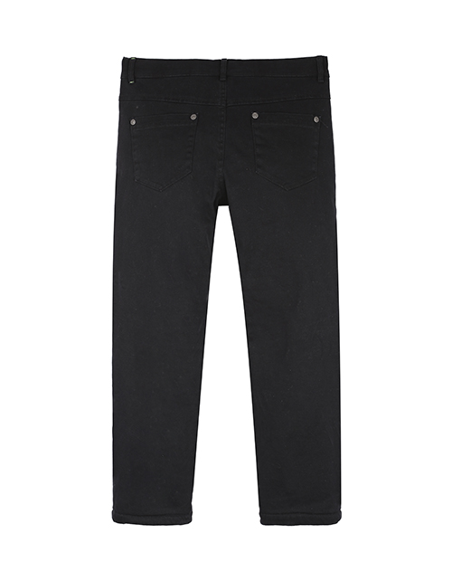 Черные брюки для мальчика имеют зауженный фасон, дополнены декоративной строчкой, двумя внутренними и двумя накладными карманами. Брюки пошиты из твила, что гарантирует износостойкость изделия. Подкладка из флиса дарит тепло и комфорт в носке.