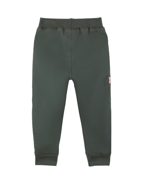 Брюки для мальчика цвета хаки. Зауженные к низу, мягкий пояс из рибаны с функциональным шнурком. Накладной карман. Дизайнерское оформление в стилистике капсулы "Джунгли Trip".