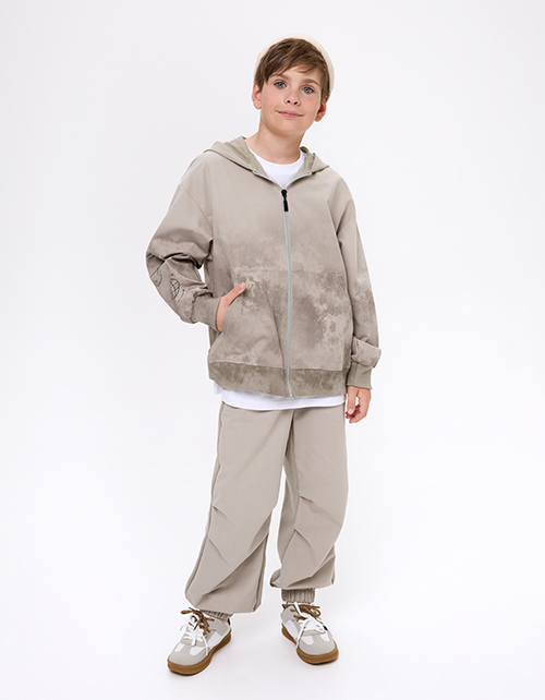 Брюки-парашюты из твила и футера с браш-эффектом - держат форму и удобны в носке. Прямой объёмный силуэт и средняя посадка обеспечивают комфорт. Эластичный пояс создаёт мягкую фиксацию, боковые карманы практичны, полукольцо добавляет утилитарный акцент.