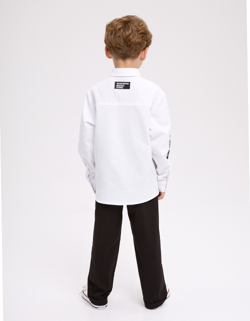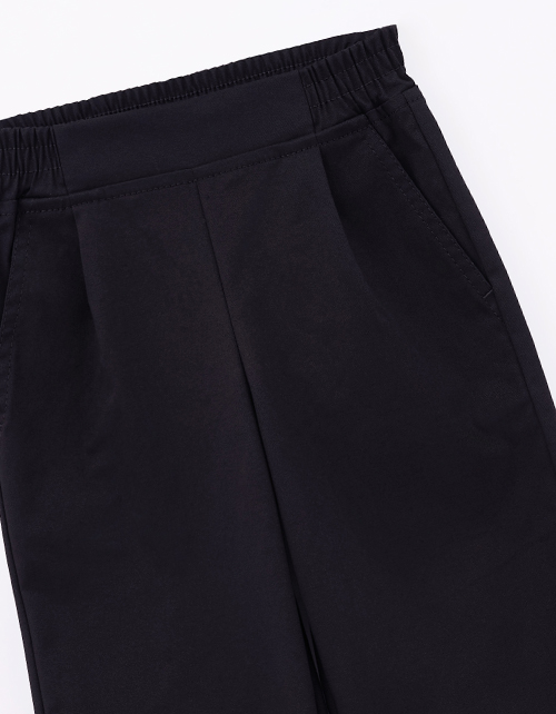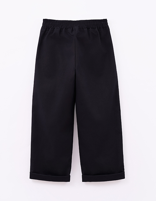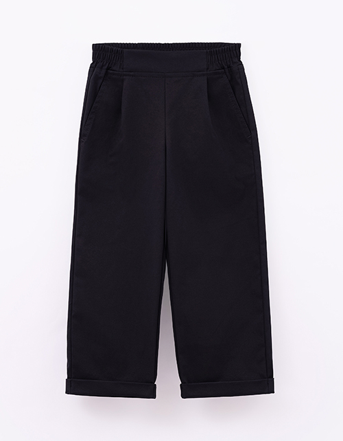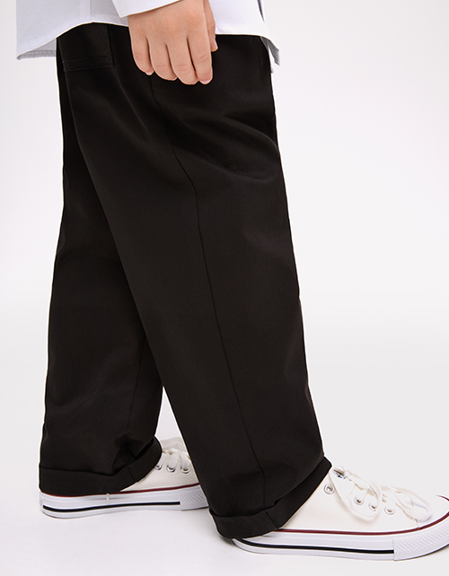 Чёрные брюки для мальчика. Прямой силуэт и средняя посадка обеспечивают комфорт. Мягкий эластичный пояс создаёт удобную посадку. Боковые карманы практичны. Модель из твила хорошо держит форму. Составят идеальную основу для образов для особых случаев.