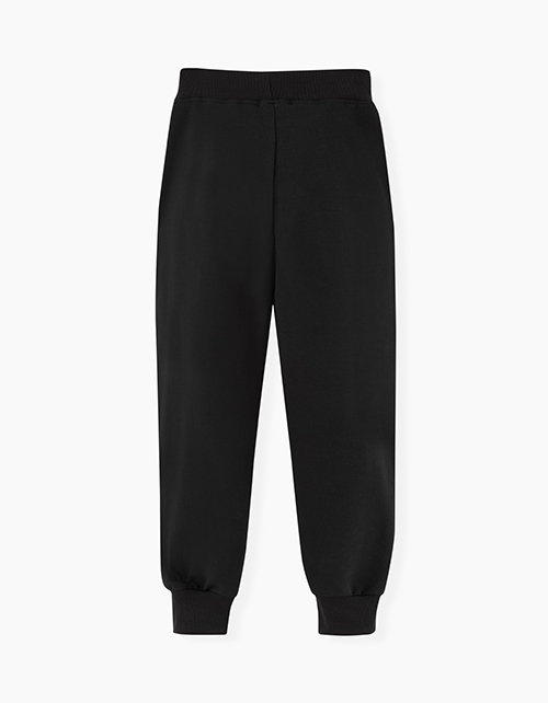 Черные брюки-джоггеры для мальчика. Отличный вариант для создания стильного повседневного образа. Комфортная модель на эластичном поясе с наклонными боковыми карманами.