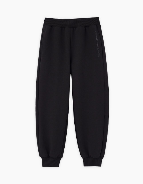 Стильные чёрные джоггеры. Прямая модель со средней посадкой. Мягкий пояс и манжеты из эластичной рибаны обеспечивают комфорт и свободу движений. Авторский лаконичный мотивационный принт подчёркивает индивидуальность. Идеальный выбор для активных дней!
