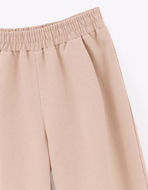 Льняные брюки в светло-коричневом оттенке. Прямой объёмный крой даёт свободу движений. Закреплённые отвороты подчёркивают задуманный стиль и правильную длину. Спортивный пояс с мягкой резинкой гарантирует комфортную посадку.