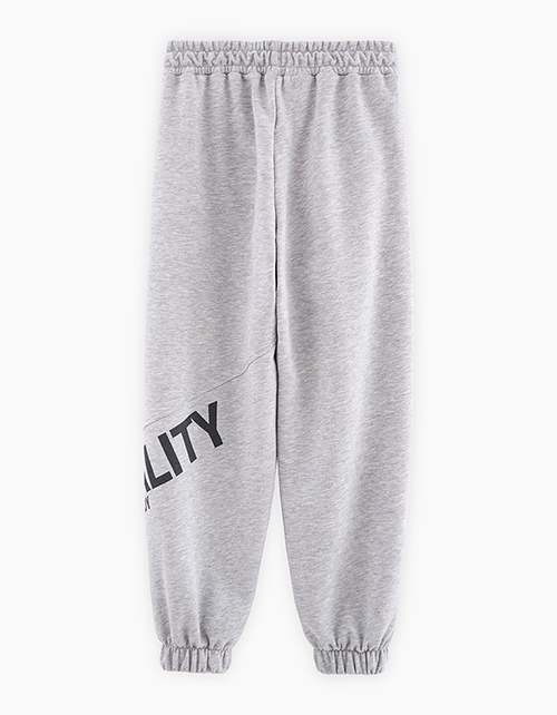 Комфортные базовые брюки в оттенке серый меланж для мальчика. Прямая широкая модель. Мягкие манжеты по низу. Изделие на мягком поясе, со средней посадкой. Карманы в шве. Авторский шрифтовой принт. Составит расслабленный образ с артикулом 240119.