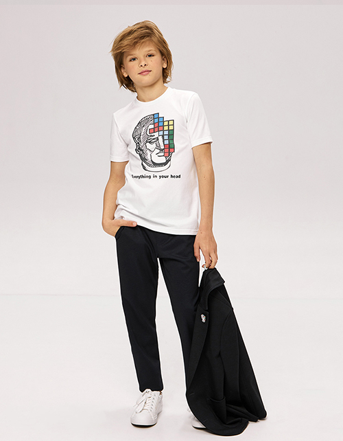 "Клетчатые школьные брюки для мальчики. Комфортная модель прямого силуэта на эластичном поясе с наклонными боковыми карманами. Наружная регулировка по поясу.
