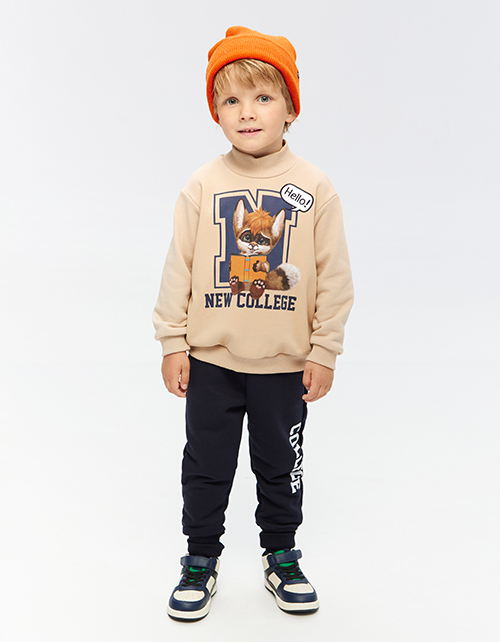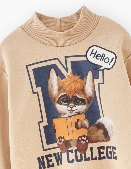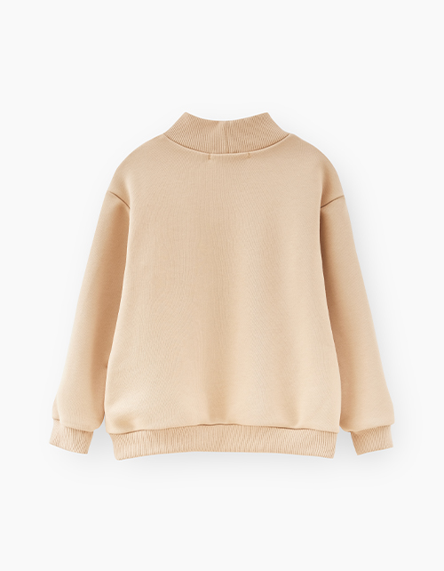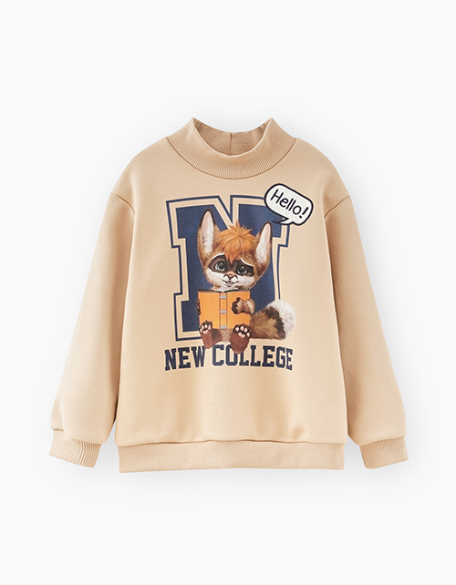 Свитшот в стильном оттенке "сливочный латте". Комфортная повседневная модель с эффектным авторским принтом. Воротник-стойка из рибаны.
