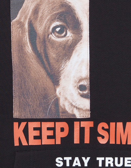 Удлиненный свитшот свободного кроя с горловиной "хомут", декорированной надписью. Манжеты рукавов и низ изделия из рибаны. Карман "кенгуру" по центру полочки. Декорирован нашивным элементом с цифровой печатью и аппликацией из пленки двух цветов.