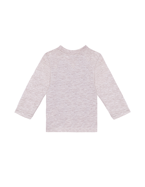 Джемпер для мальчика цвета бежевый меланж с круглым вырезом горловины. Принт в стилистике капсулы "Стильный маршрут".