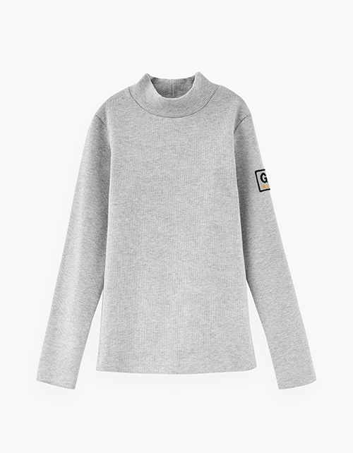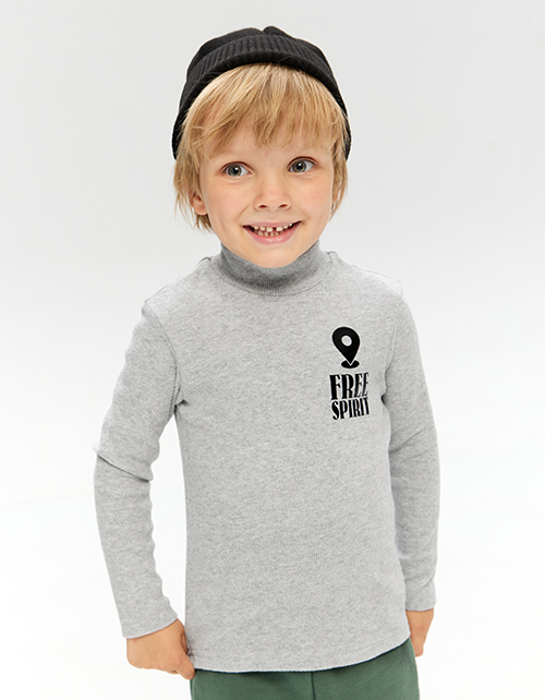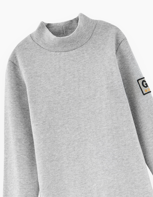 Стильный гольф цвета серый-меланж для мальчика. Модель декорирована вышивкой на рукаве. Модель выполнена из футера с браш-эффектом, что делает гольф мягким и бархатистым, повышая износостойкость.