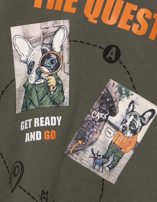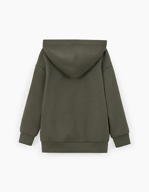 Модное худи с капюшоном для мальчика. Модель объёмного силуэта со спущенной линией плеча. Низ и манжеты из рибаны. Худи выполнено из тактильно приятного футера с браш-эффектом. Модель декорирована нашивным элементом из плащёвки и авторским принтом.