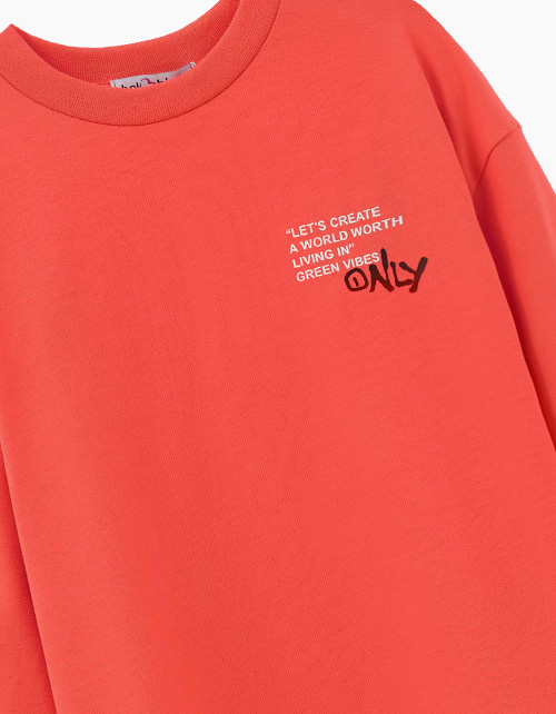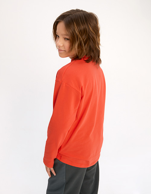 Яркий лонгслив для мальчика. Модель комфортного прямого расслабленного силуэта. Эластичная горловина из рибаны. Лонгслив с лаконичным авторским принтом. Стильный образ с рубашкой 253121 и брюками 253120.