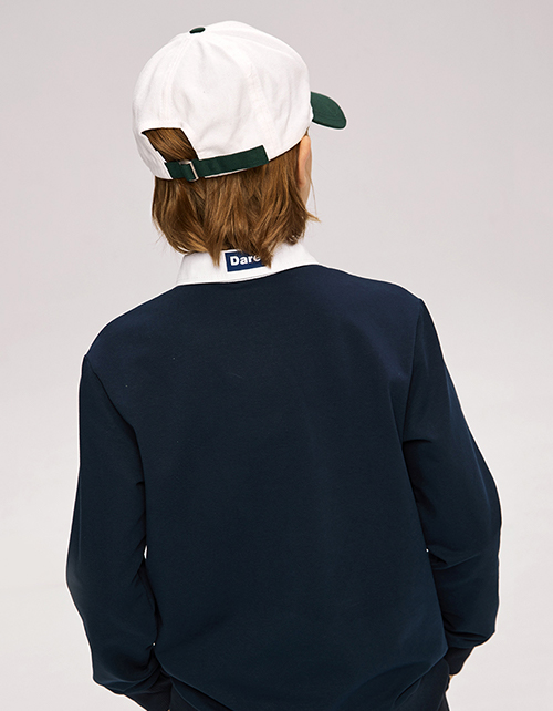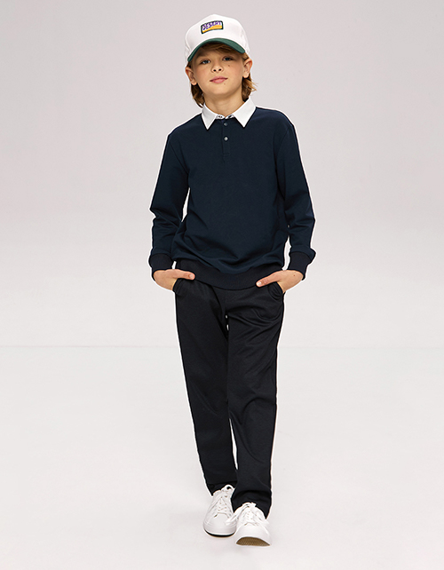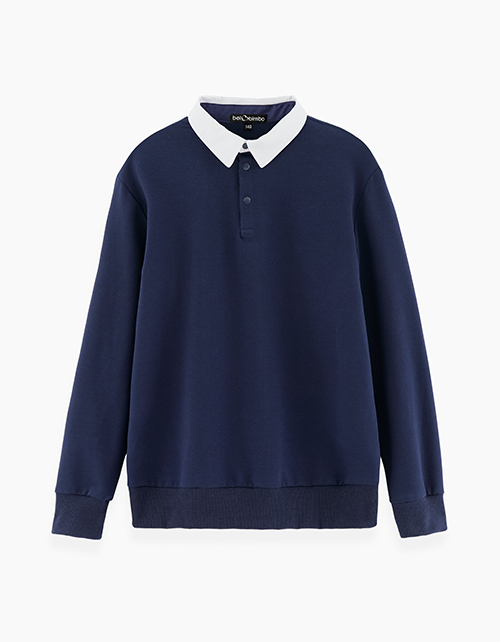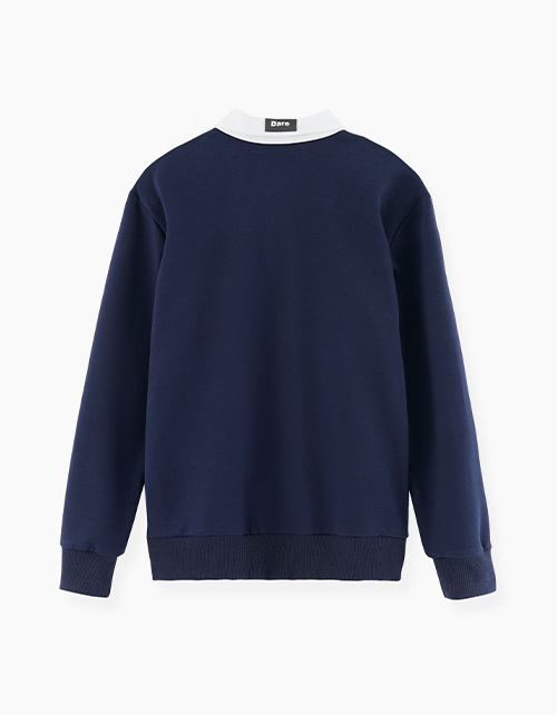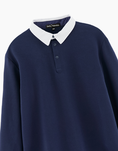 Джемпер-обманка для мальчика. Трендовая школьная модель. Имитация темно-синего джемпера и белой рубашки. Удобная застежка-поло на кнопки.