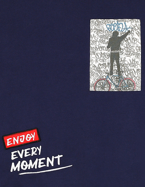 Стильный темно-синий джемпер для мальчика дополнен круглым вырезом горловины, манжетами на рукавах и по низу изделия, стильными принтами и вставками по бокам. Изделие пошито из футера, обеспечивающего износостойкость и приятные тактильные ощущения.