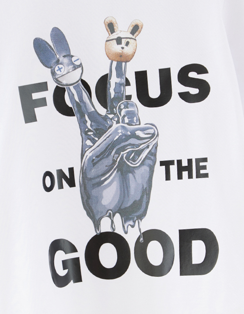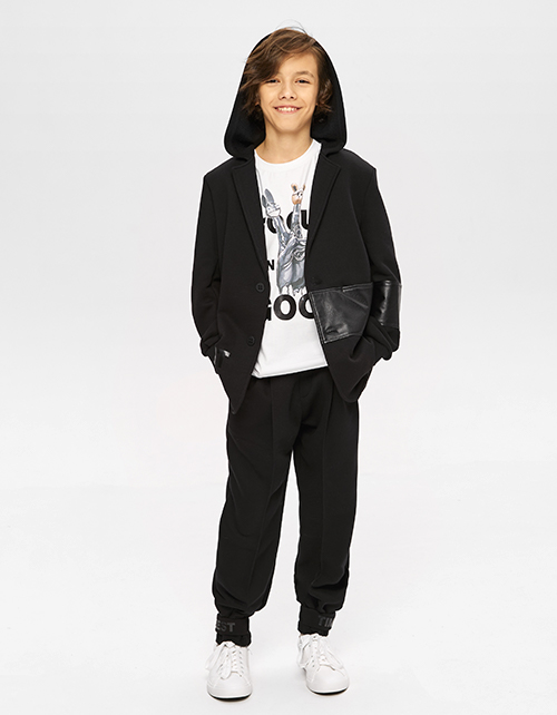 Стильная белая футболка для мальчика. Модель декорирована тематическим авторским принтом.