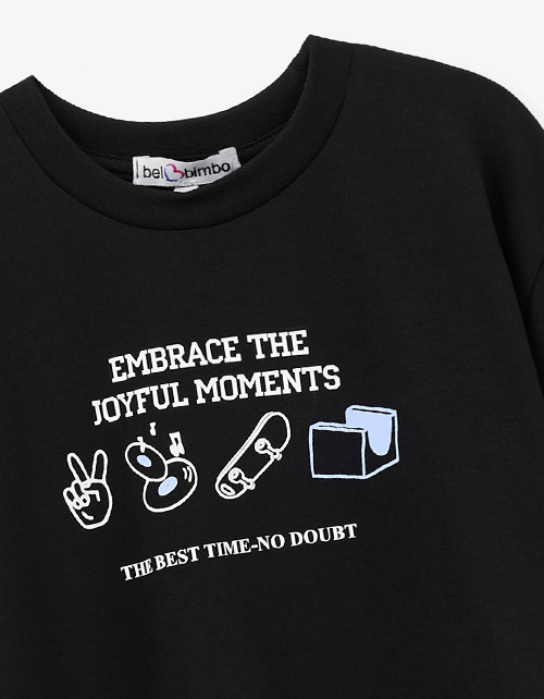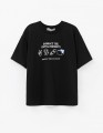 Чёрная футболка из мягкого хлопка создаёт современный, графичный образ. Прямой крой комфортен в движении и подходит для активного дня. Авторский принт, выполненный цифровым способом, DTF-плёнкой и термотрансфером, добавляет выразительный акцент.