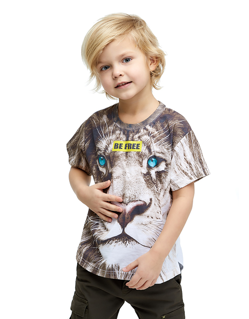 Стильная футболка оверсайз с изображением льва станет незаменимой частью гардероба маленького модника. Яркий природный принт и надпись "Be free" смотрятся оригинально и актуально. Мягкая натуральная ткань гарантирует комфорт и удобство на весь день