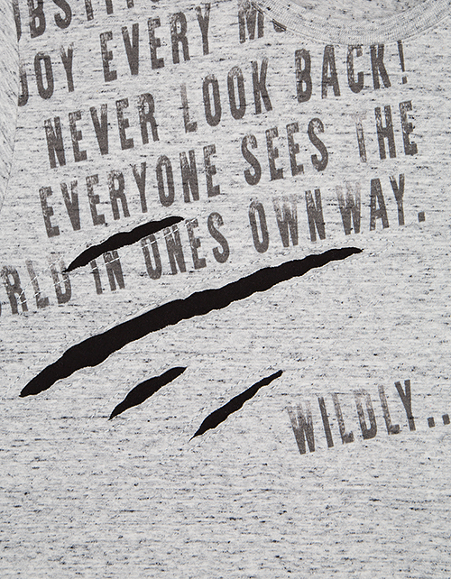 Самый "дикий" и свободный образ настоящего брутального парня поможет создать стильная многослойная футболка. Оригинальность изделию придаёт шрифтовой принт и объёмные "царапины от когтей". Приятная комфортная ткань обеспечит удобство на весь день