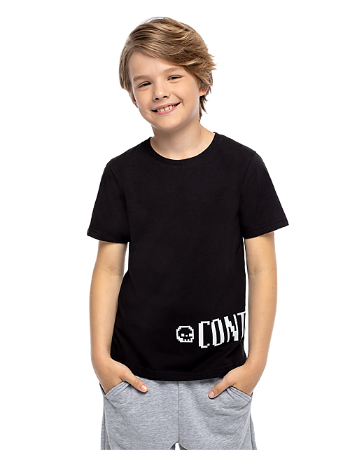 Черная футболка с рисунком имеет стильный дизайн и свободный силуэт. Изделие дополнено широкими короткими рукавами и контрастным принтом с надписью. Трикотажное полотно кулирная гладь гарантирует приятные тактильные ощущения и комфорт в носке.