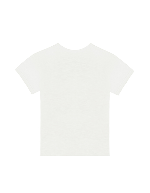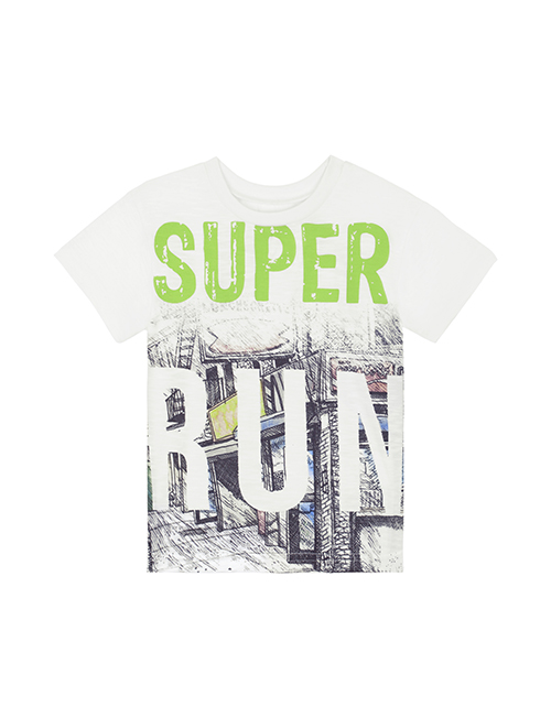 Белая футболка для мальчика с круглым вырезом горловины и принтом в стилистике капсулы "Стильный маршрут".