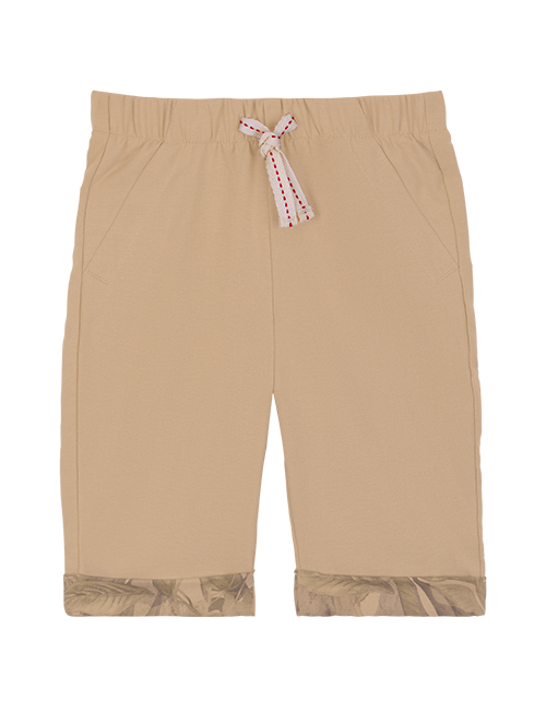 Светло-бежевые бриджи для мальчика. Функциональный шнурок на резинке. Отвороты по низу. Дизайнерское оформление в стилистике капсулы "Джунгли Trip".