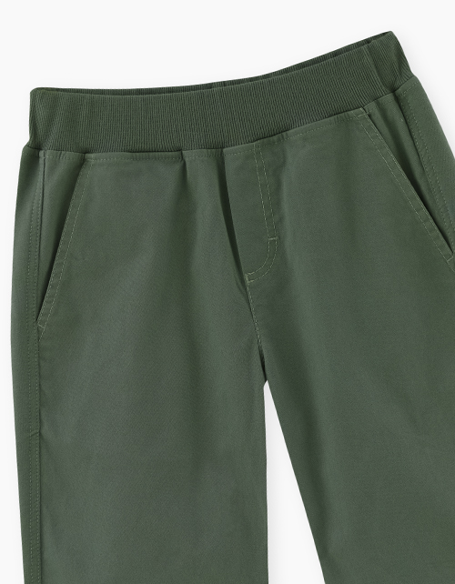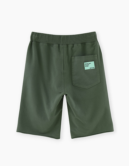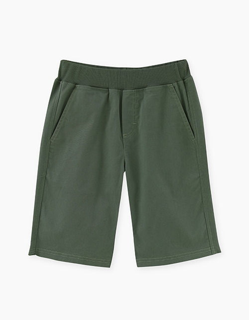 Летние шорты цвета хаки для мальчика. Комфортная модель на эластичном поясе с наклонными боковыми карманами.