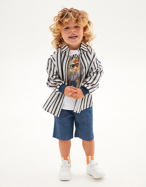 Шорты из облегчённого джинса для мальчика. Модель прямого силуэта. Изделие на мягком поясе, со средней посадкой. Шорты дополнены карманами-хулиганами.