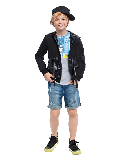 Джинсовые шорты для мальчика. Кант на кармане. Ткань с эффектом потертости и разрывами. Регулируемая талия. Штанины с отворотами.