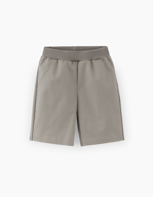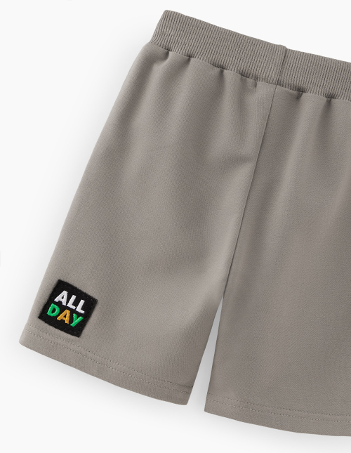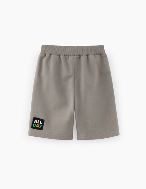 Серо-коричневые шорты для мальчика. Модель прямого силуэта со средней посадкой. Шорты из комбинированного материала: футер и твил. Максимально комфортное изделие без застёжек, на мягком поясе. Модель декорирована вышивкой с аппликацией.
