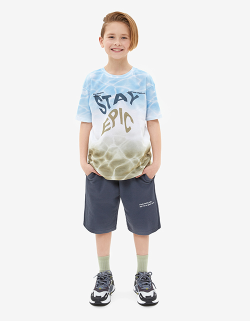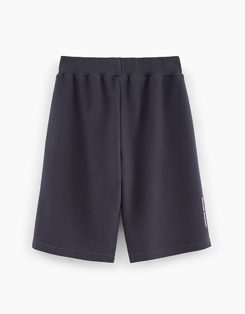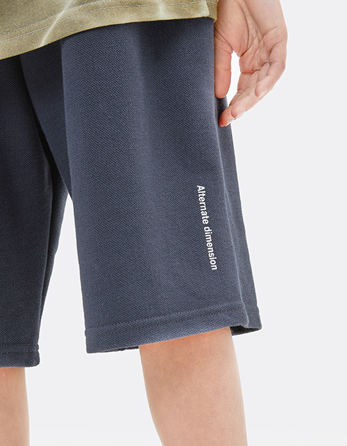 Шорты в оттенке графит для мальчика. Прямая модель со средней посадкой. Комфортное изделие на мягком поясе. Карманы в шве. Деликатный шрифтовой принт. Идеально впишутся в любой гардероб ребёнка.