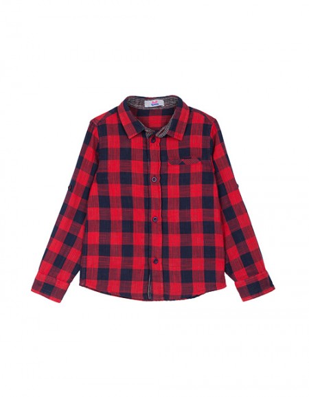 Комбинированная рубашка прямого силуэта для мальчика. Спущенная линия плеча. Контрастные кнопки. Манжеты из рибаны. Комбинация материалов: тёмно-синяя кулирная гладь и светло-голубая сорочечная ткань. Деликатный авторский принт. Соблюдайте правила ухода!