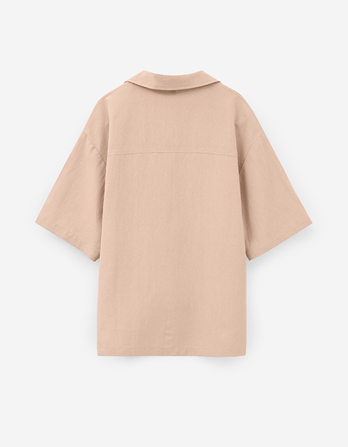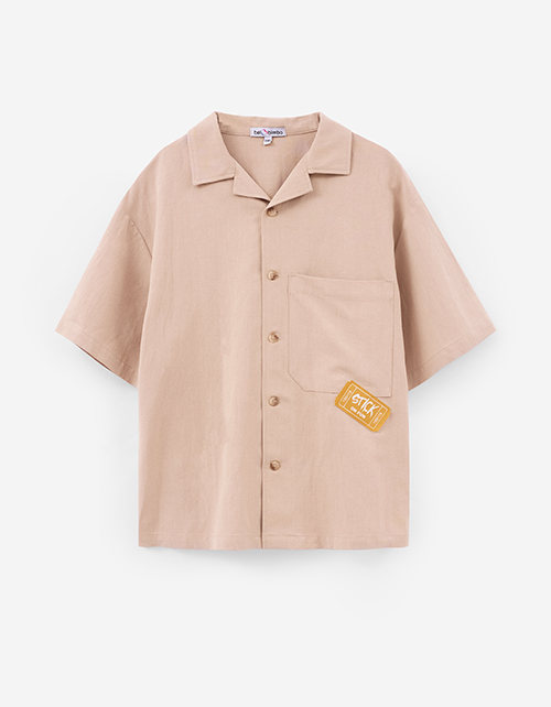 Рубашка из льна в светло-коричневом оттенке выполнена в oversize и пиджачном стиле. Прямой крой и накладной утилитарный карман создают современный образ. Пуговицы и жаккардовая лейба добавляет выразительный акцент.