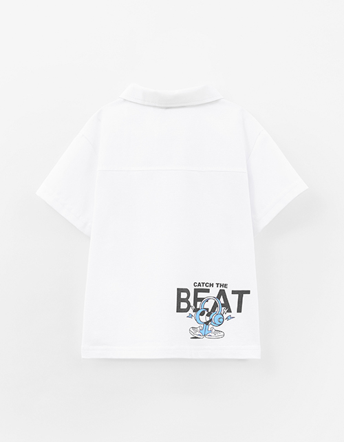 Белая рубашка-поло из кулирки и сорочечной ткани - лёгкая и удобная. Прямой силуэт обеспечивает аккуратную посадку. Короткий рукав и стояче-отложной воротник на кнопке формируют опрятный вид. Декор - цифровой принт с термоплёнкой.